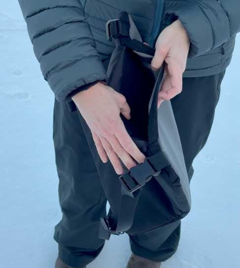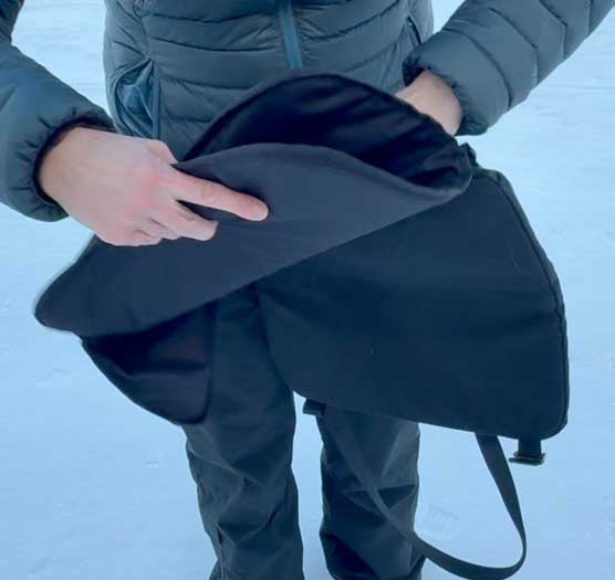 3) Pull out the black hüga core. Roll and pack the core, store the cover for later