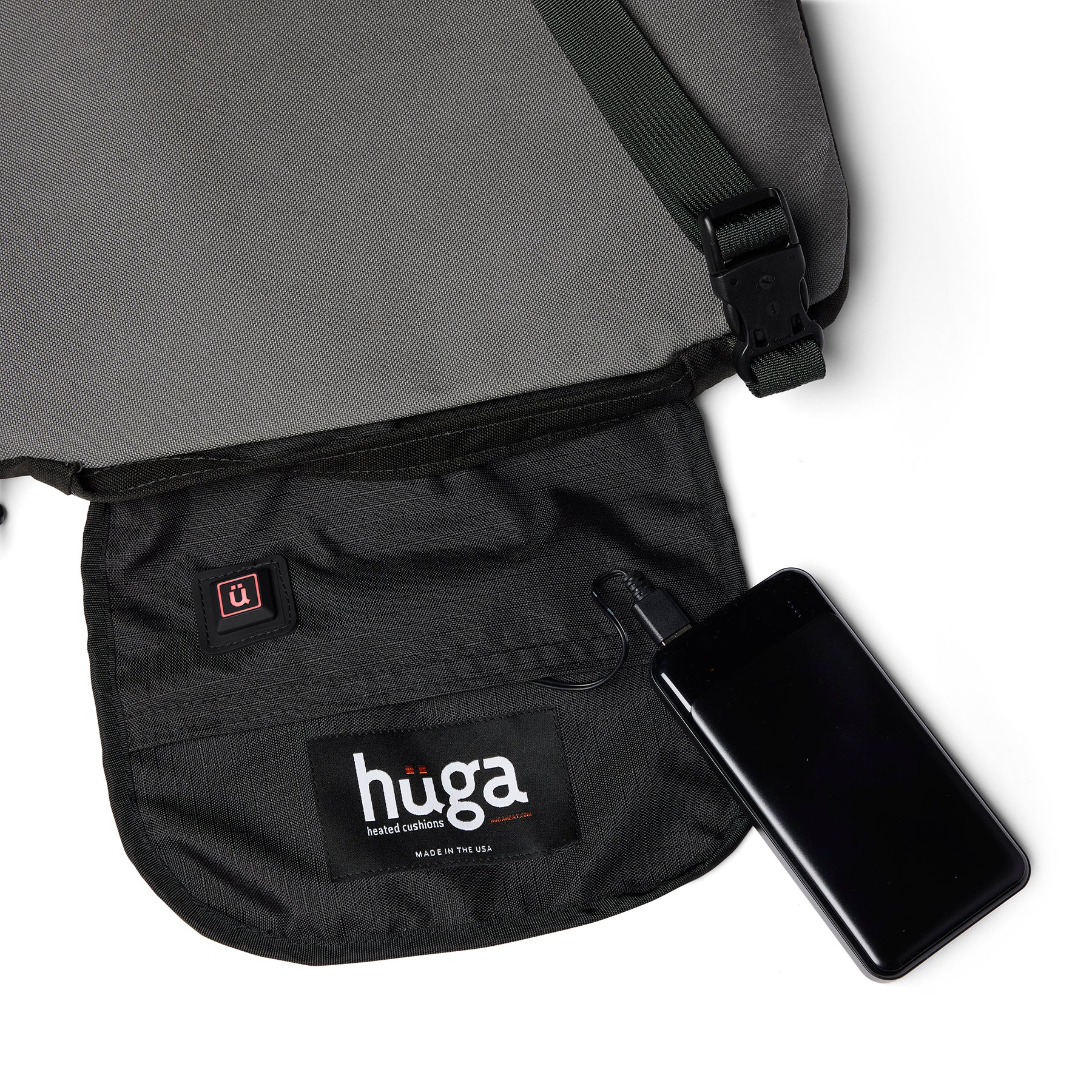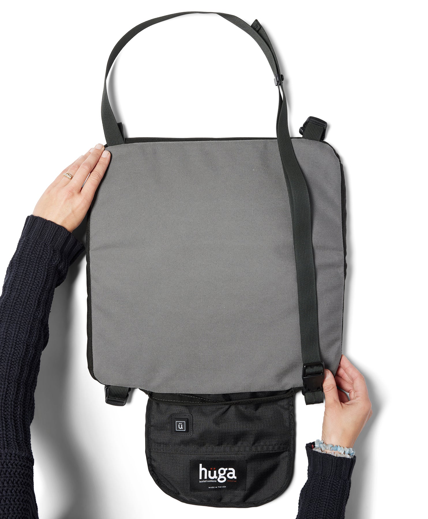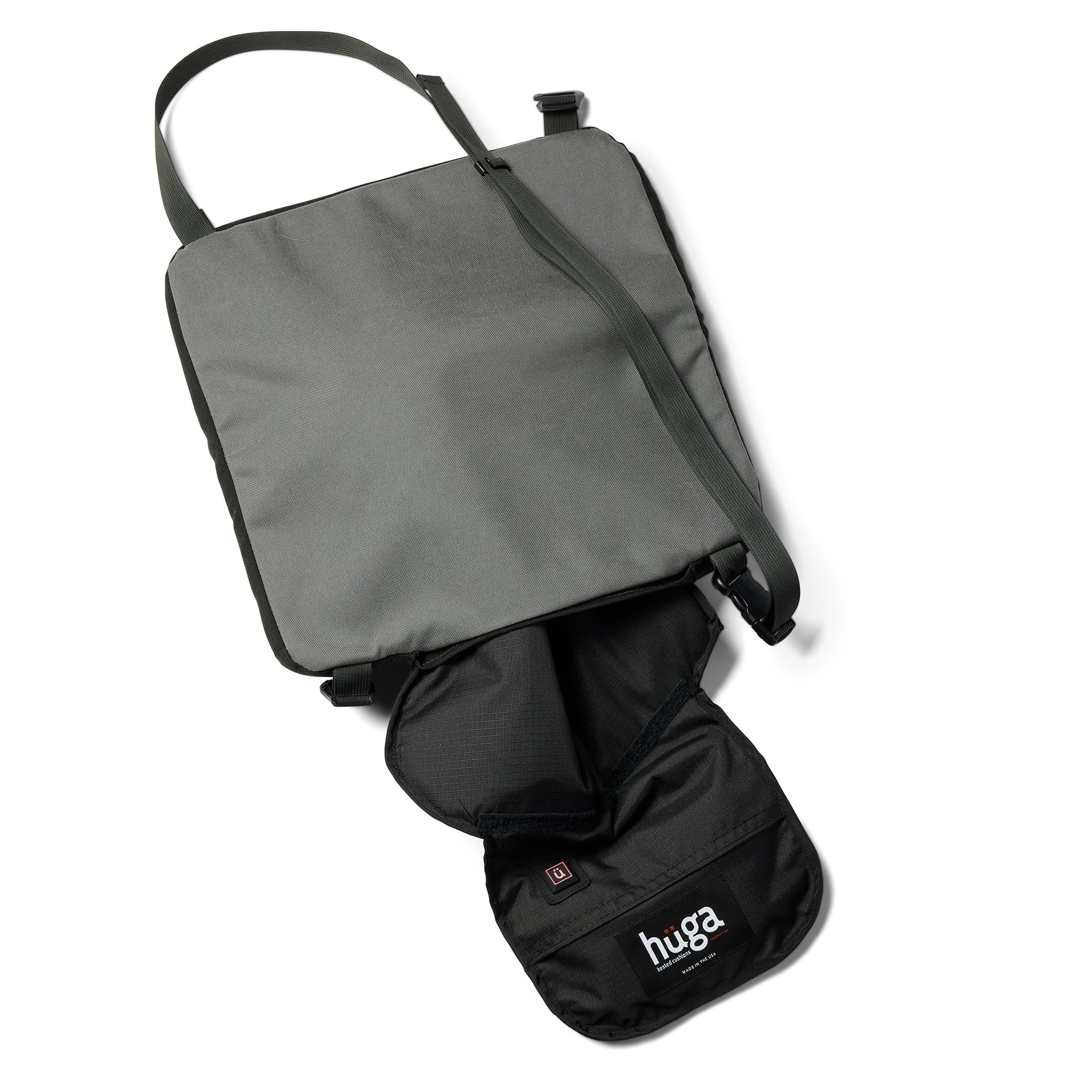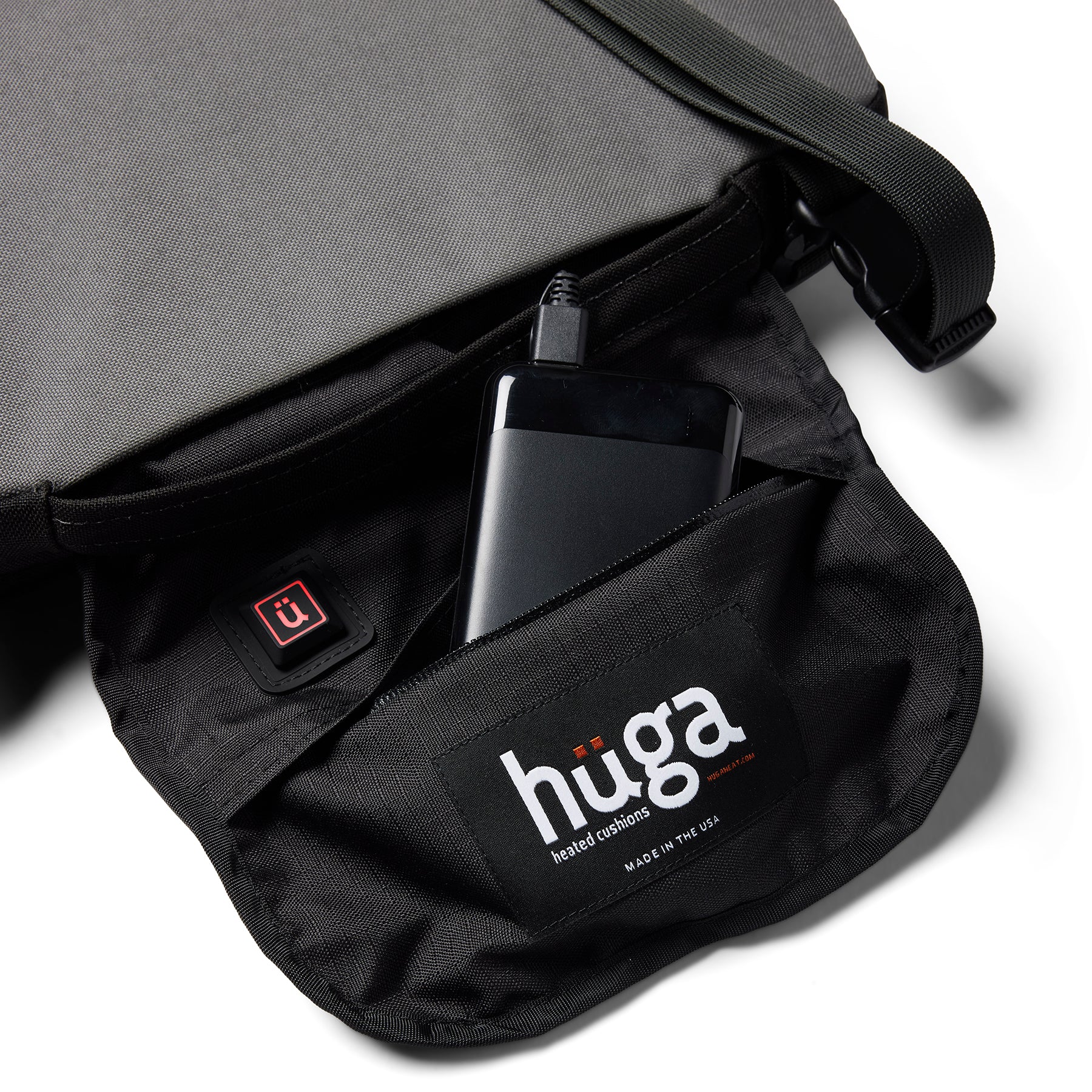 The hüga go is a modular heated cushion that transforms into a messenger bag for ultimate portability.