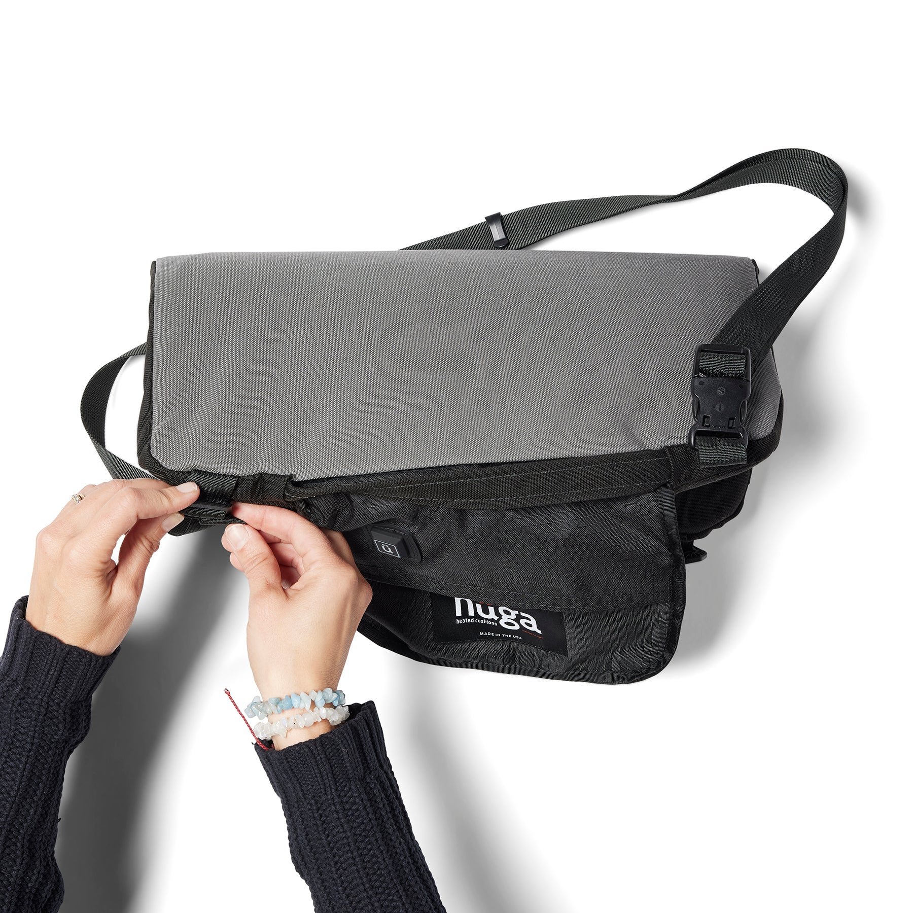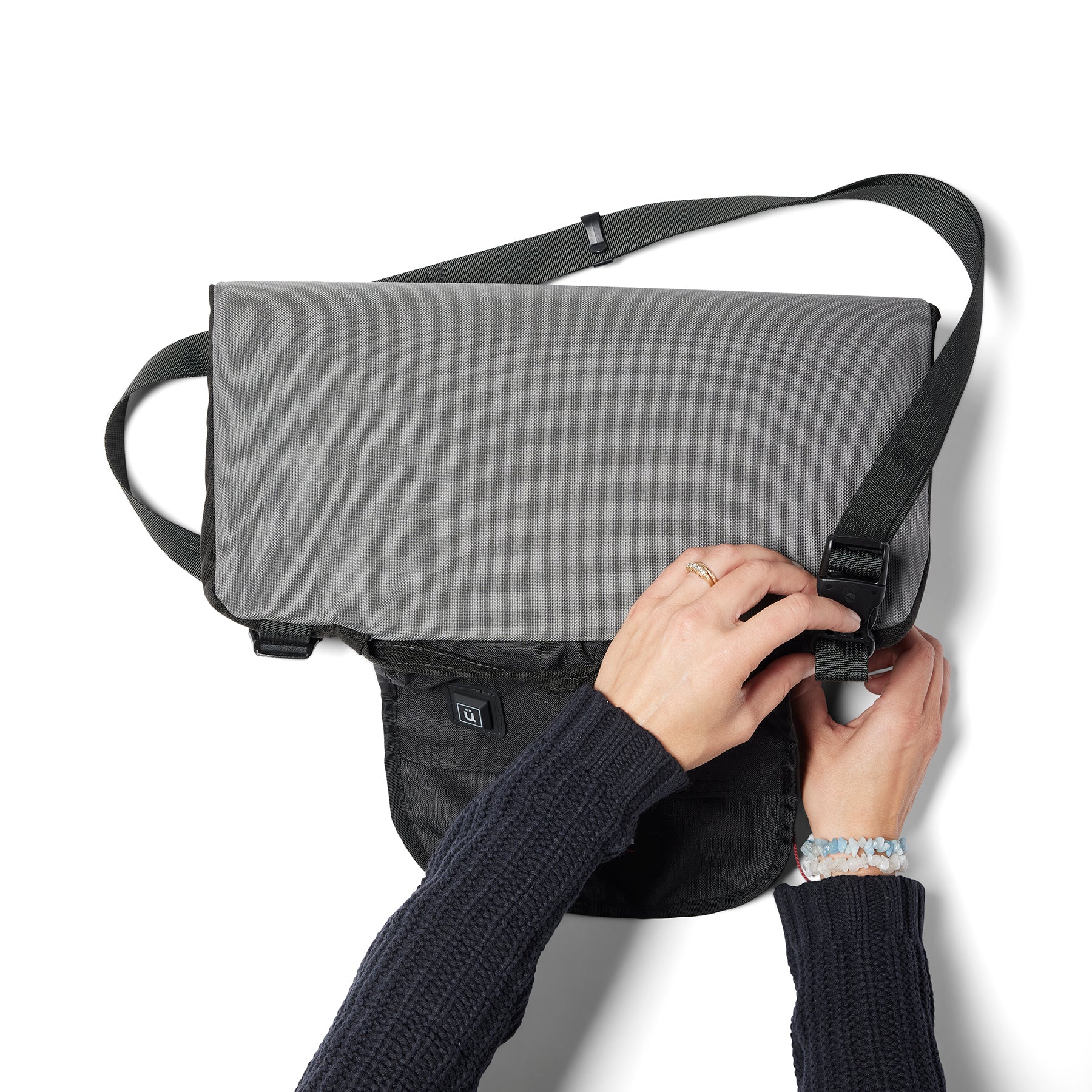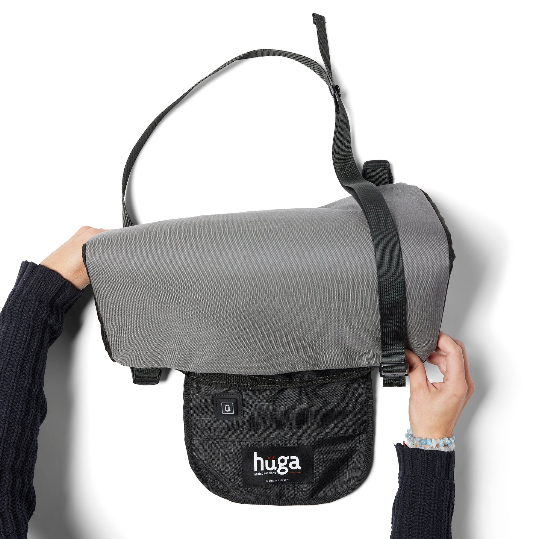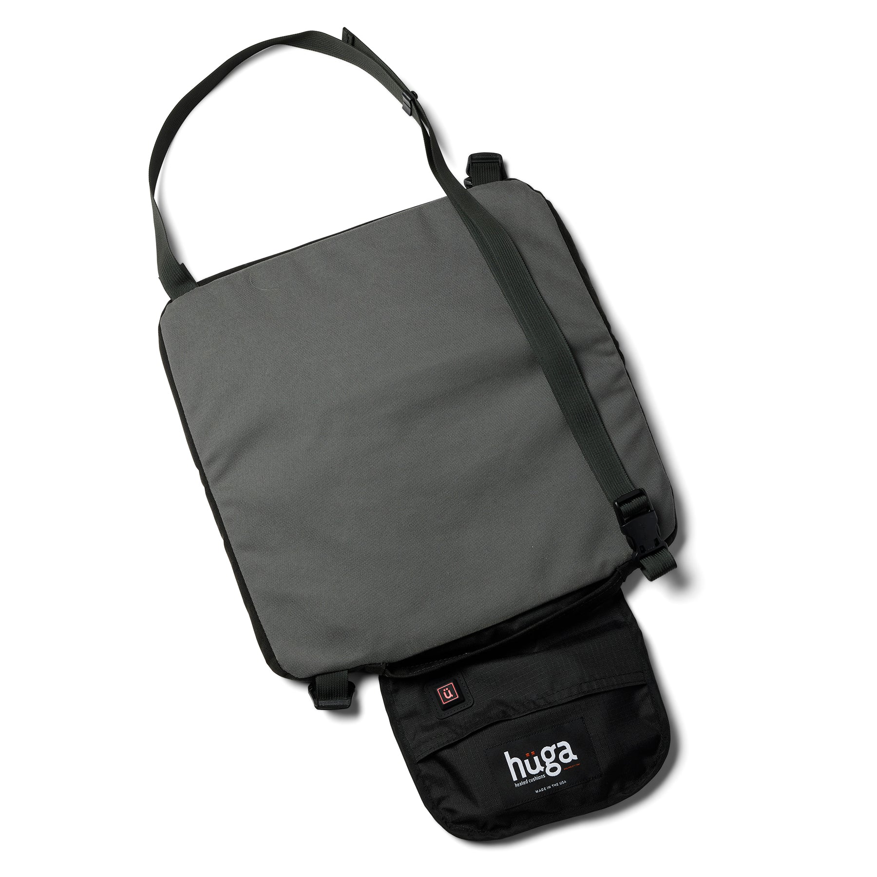 The hüga go is a modular heated cushion that transforms into a messenger bag for ultimate portability.