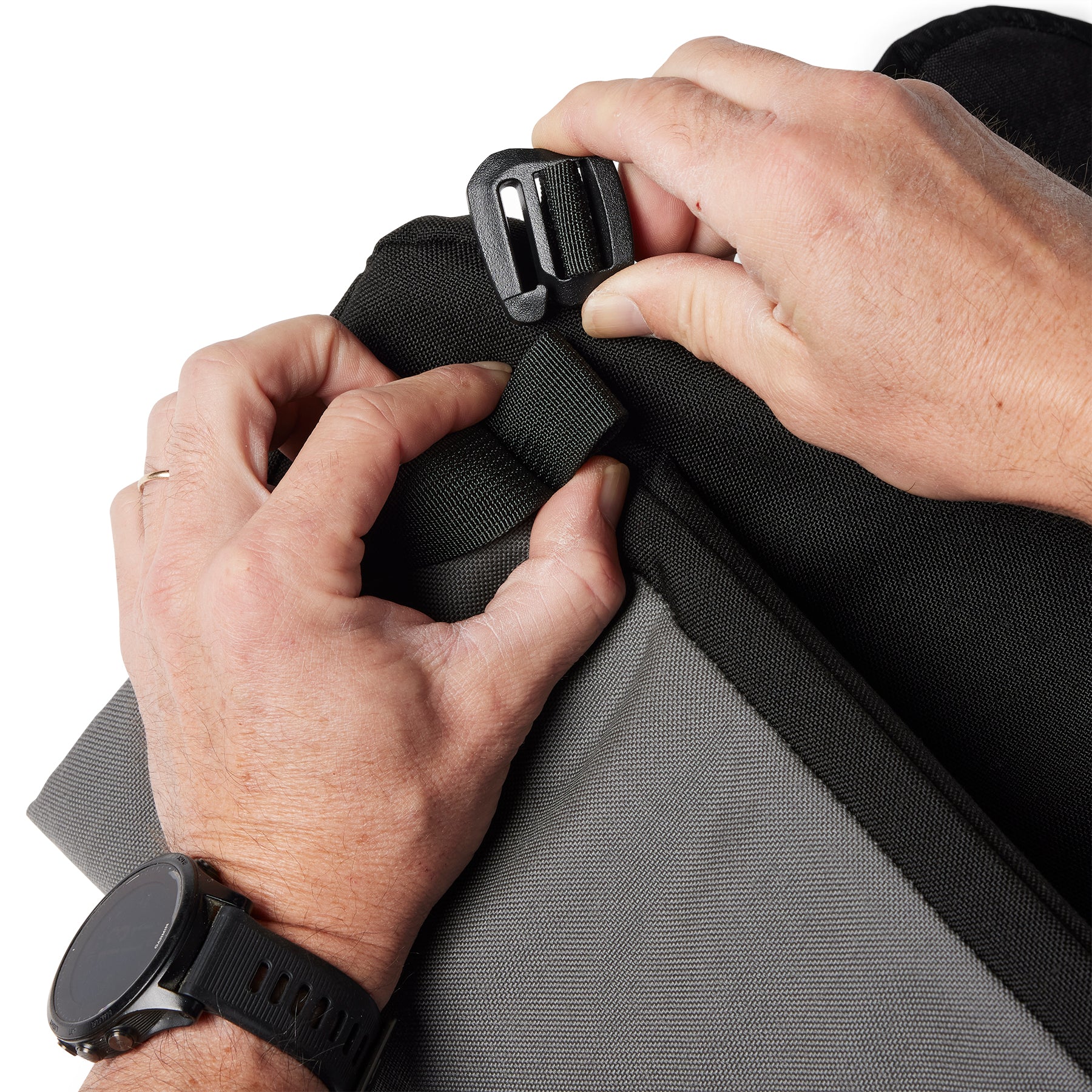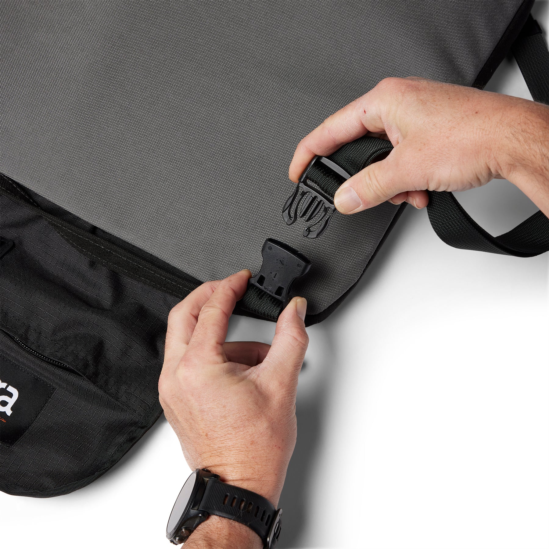 fabric covers in a variety of fabrics. - Ultralight Crossbody: Folds into a sleek bag for hands-free transport as a messenger bag style with an adjustable strap that can also attach to bleachers or other seating.