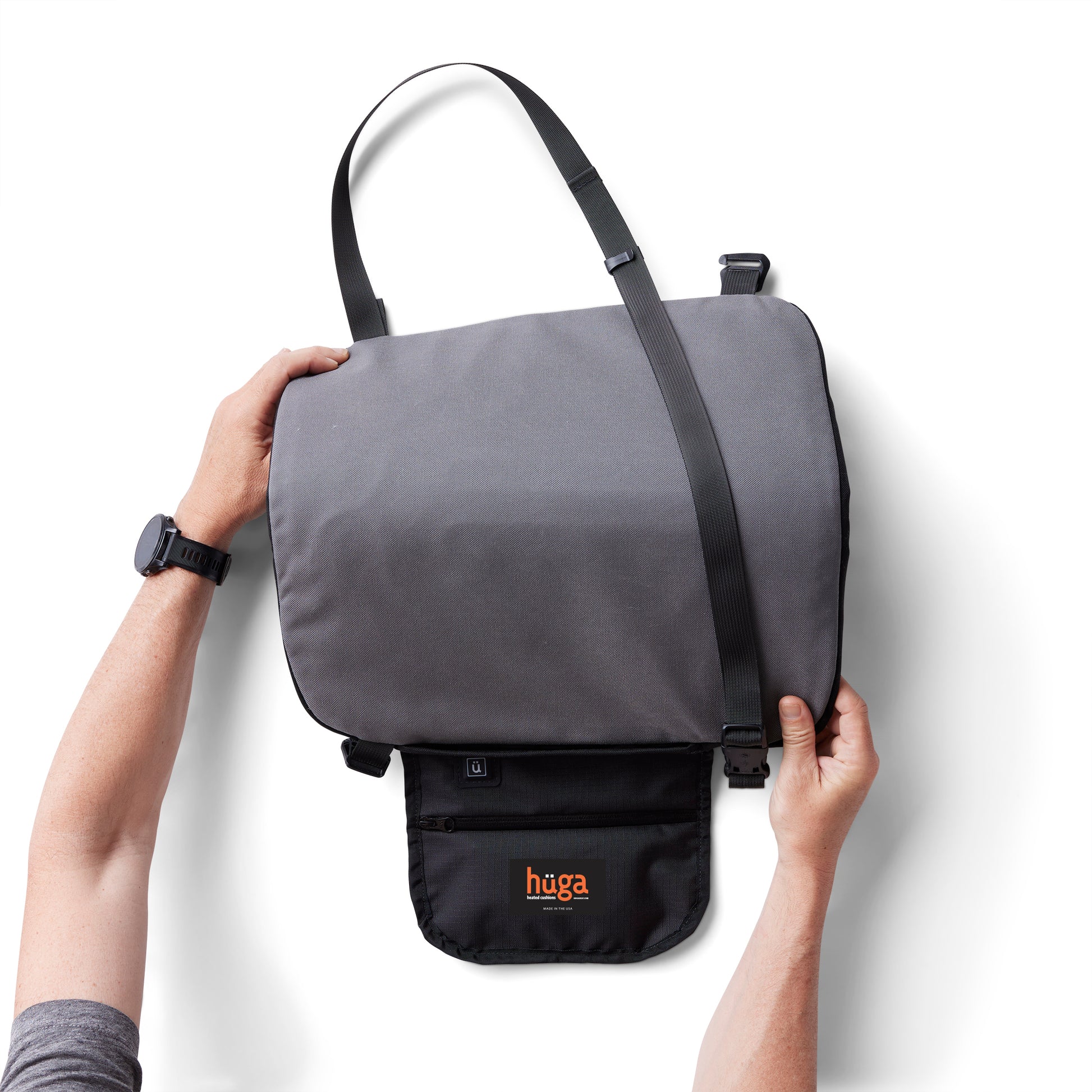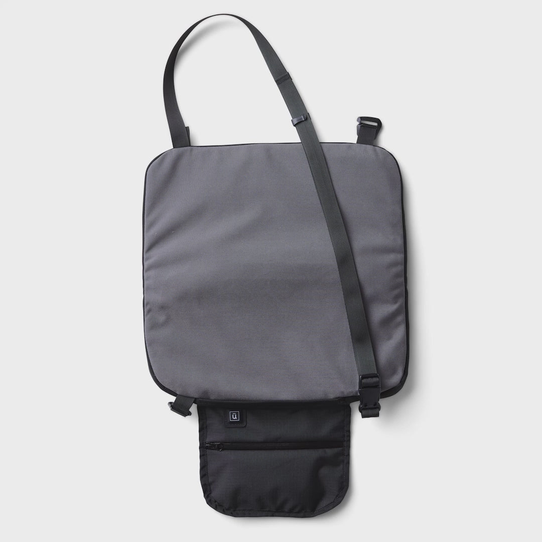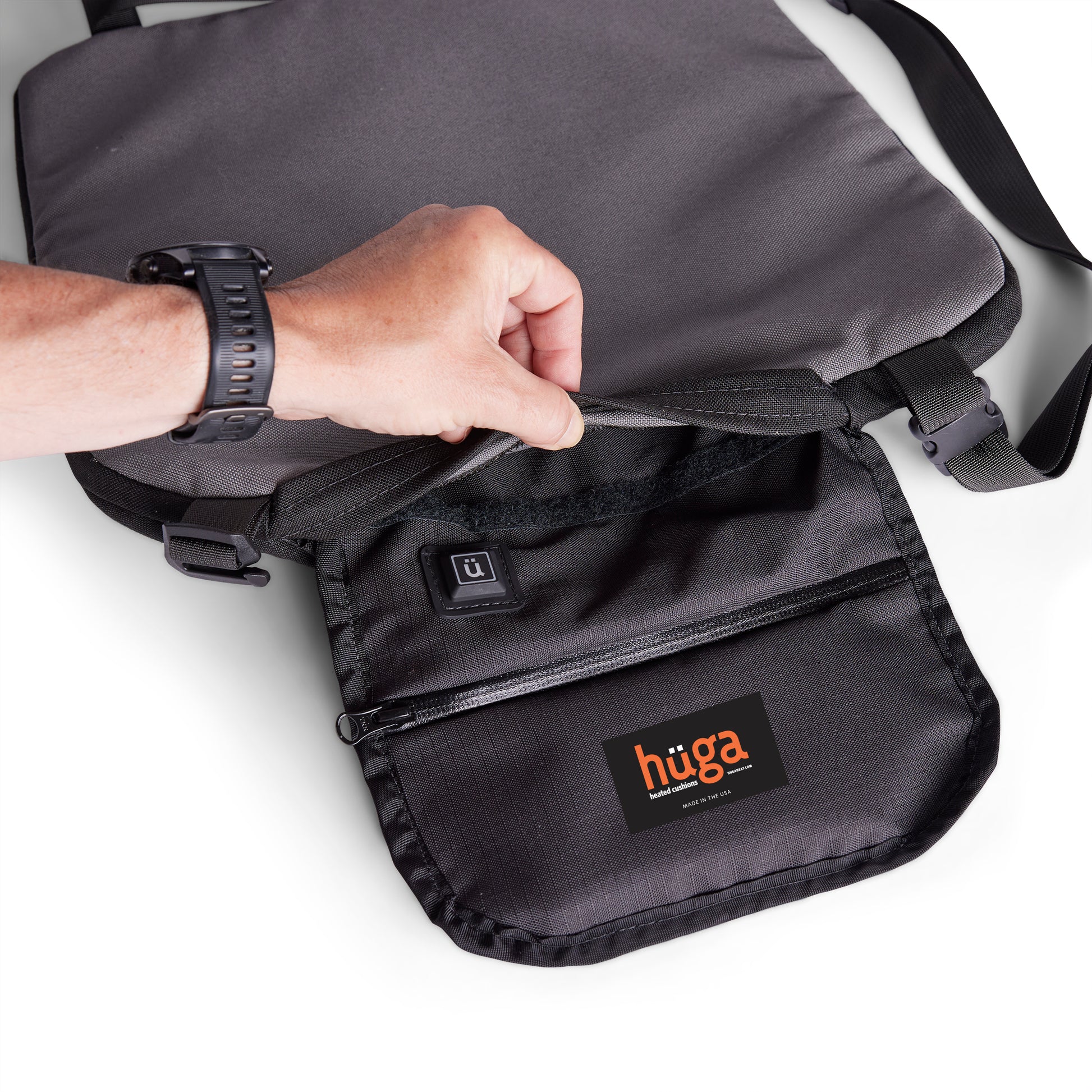 The hüga go is a modular heated cushion that transforms into a messenger bag for ultimate portability.